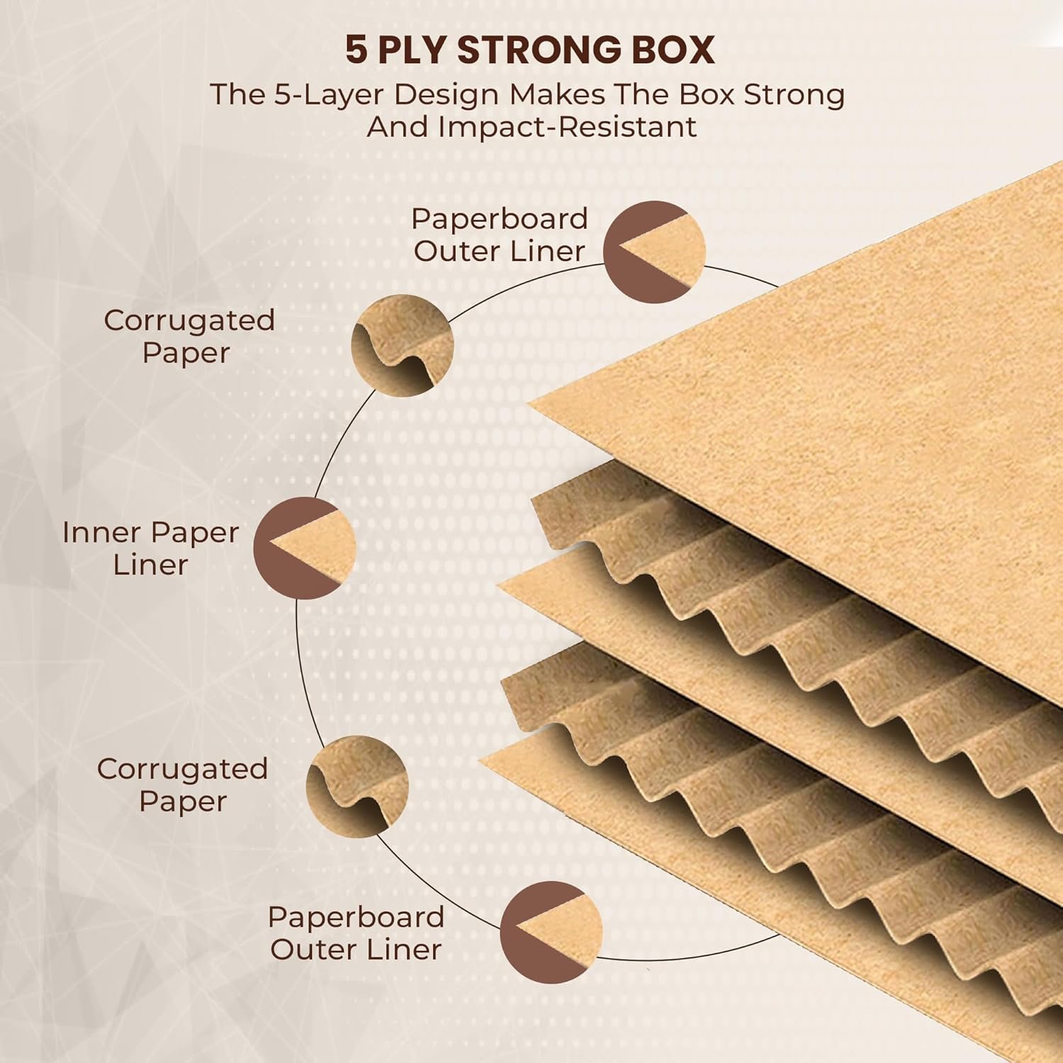 - Heavy-duty 5-ply corrugated box offering superior strength, load-bearing capacity, and enhanced protection for large, fragile, and high-value items during shipping and storage.